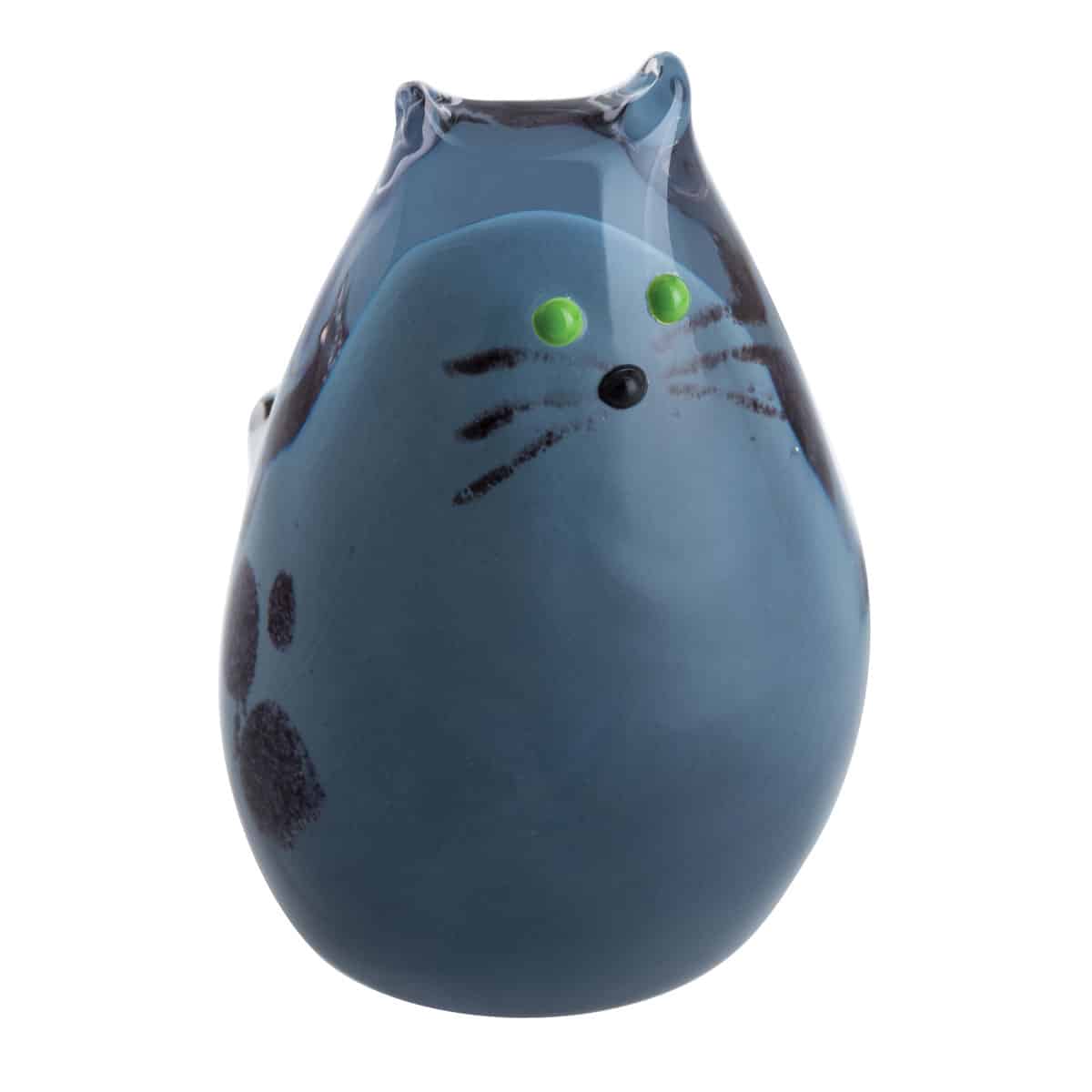 Décor entièrement réalisé à la main par inclusions de pigments colorés et d’oxydes métalliques appliqués sur plusieurs épaisseurs selon la technique dite « overlay », figurant un chat gris chartreux assis.