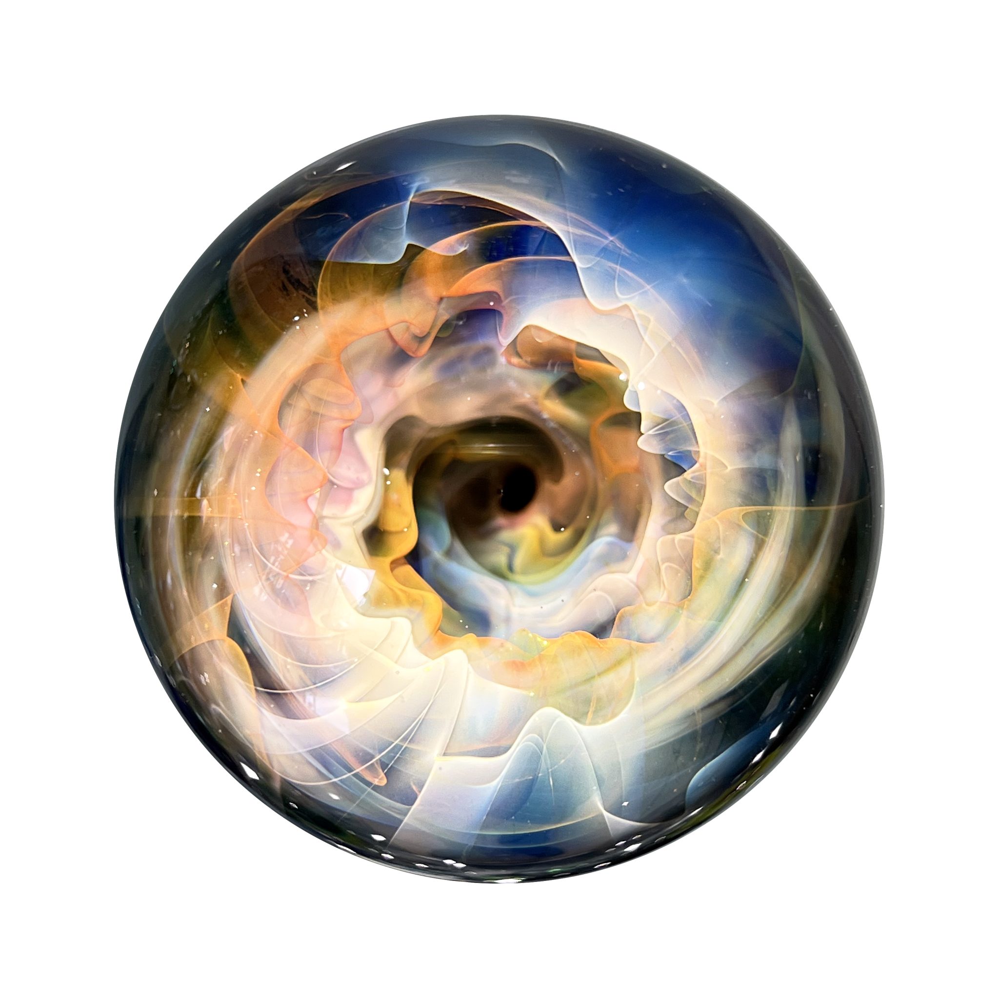 Décor entièrement réalisé à la main par inclusions d’or et d’argent purs à 99% selon la technique dite du « fuming », découvrant un vertigineux motif de galaxie, de nébuleuse ou de paysage céleste disposé sur un fond filigrané noir .
