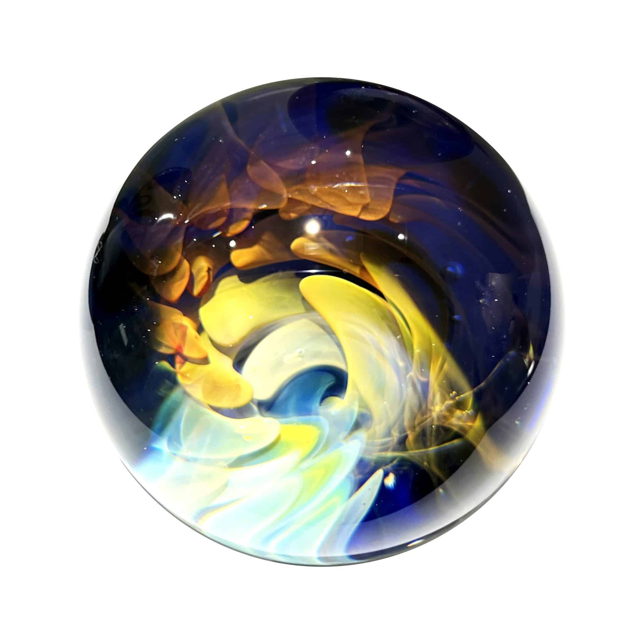 Décor entièrement réalisé à la main par inclusions d’or et d’argent purs à 99% selon la technique dite du « fuming », découvrant un vertigineux motif de galaxie, de nébuleuse ou de paysage céleste disposé sur un fond filigrané noir.