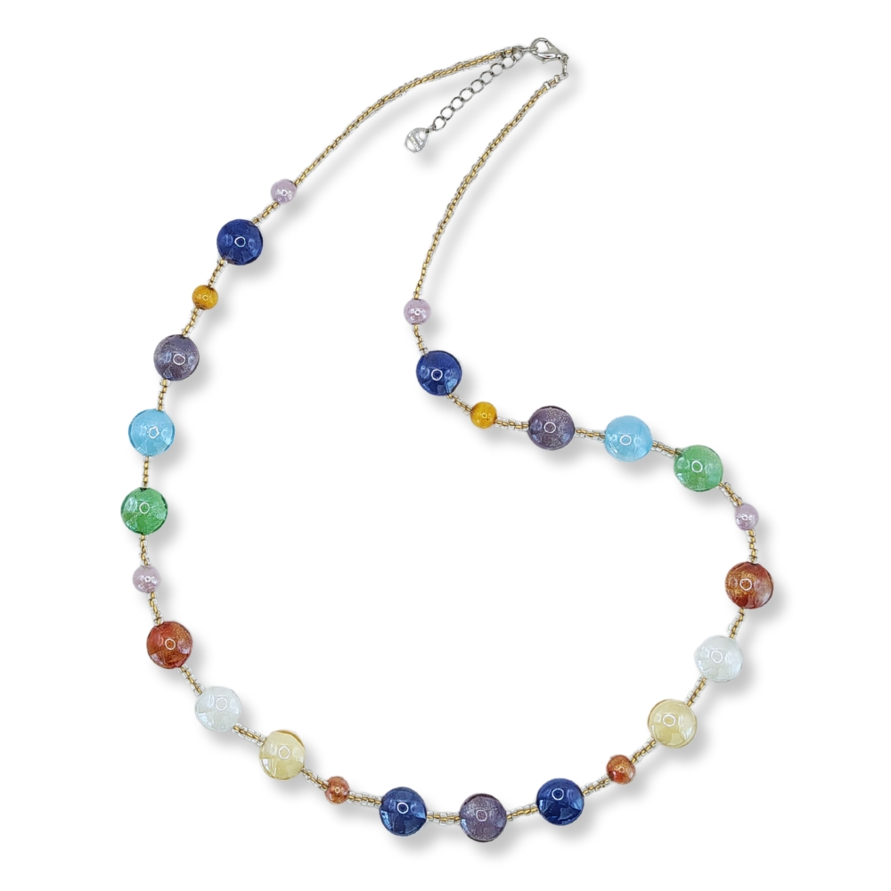 Verre façonné à la flamme par un artisan d’art, avec inclusions de pigments de couleur et de métaux précieux.