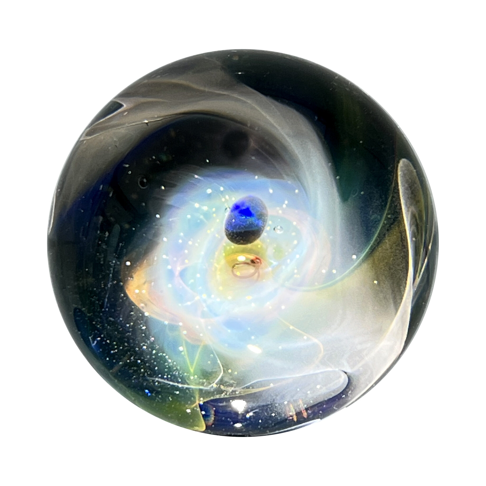 Bille en verre soufflé à la bouche.