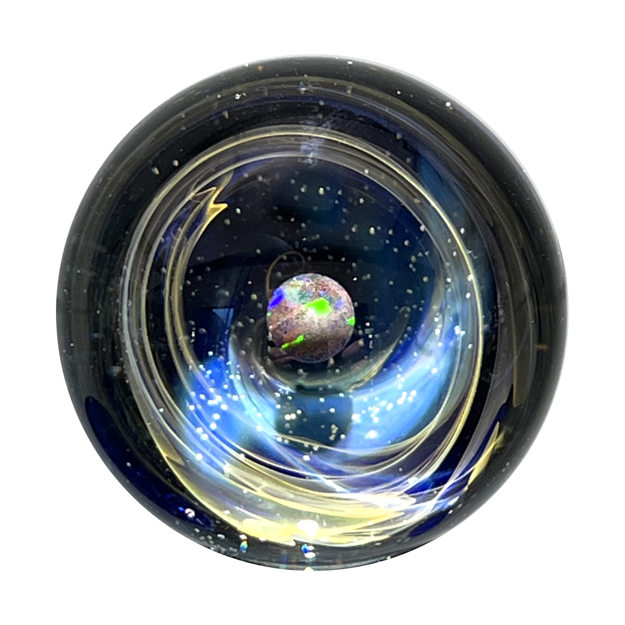 Bille en verre soufflé à la bouche.