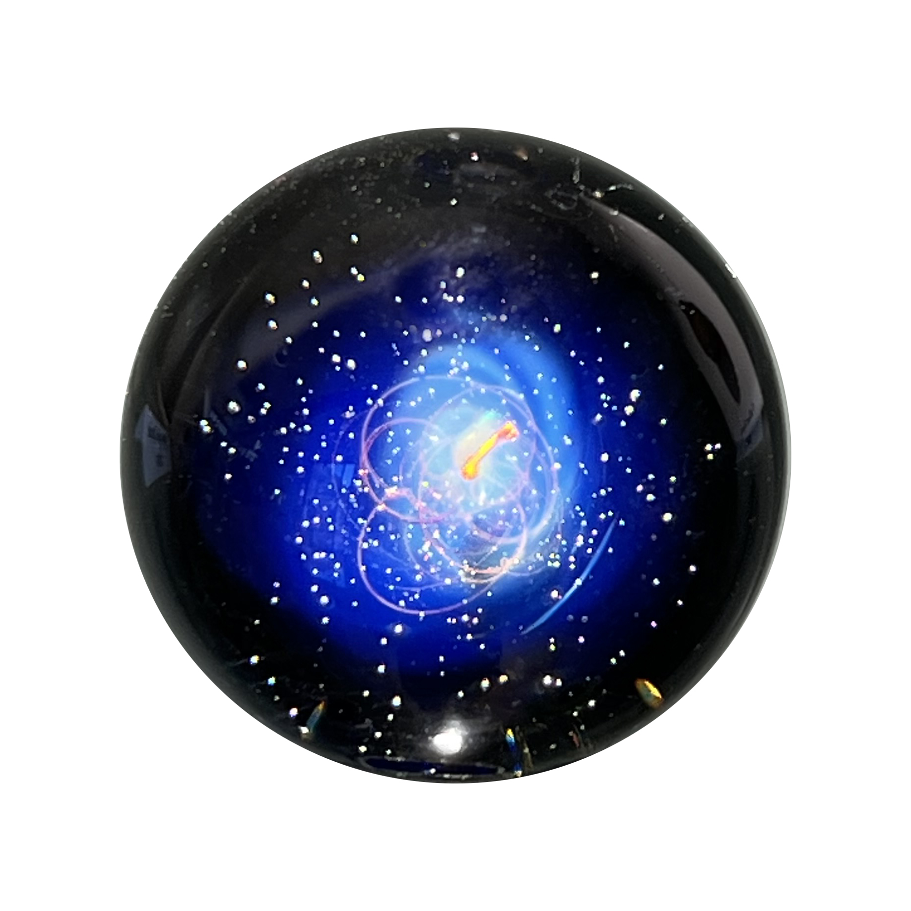 Décor entièrement réalisé à la main par inclusions d’or et d’argent purs à 99% selon la technique dite du « fuming », découvrant un profond motif cosmique de galaxie, de nébuleuse ou de paysage céleste disposé sur un fond obscur révélant l’inclusion d’un fragment d’opale.