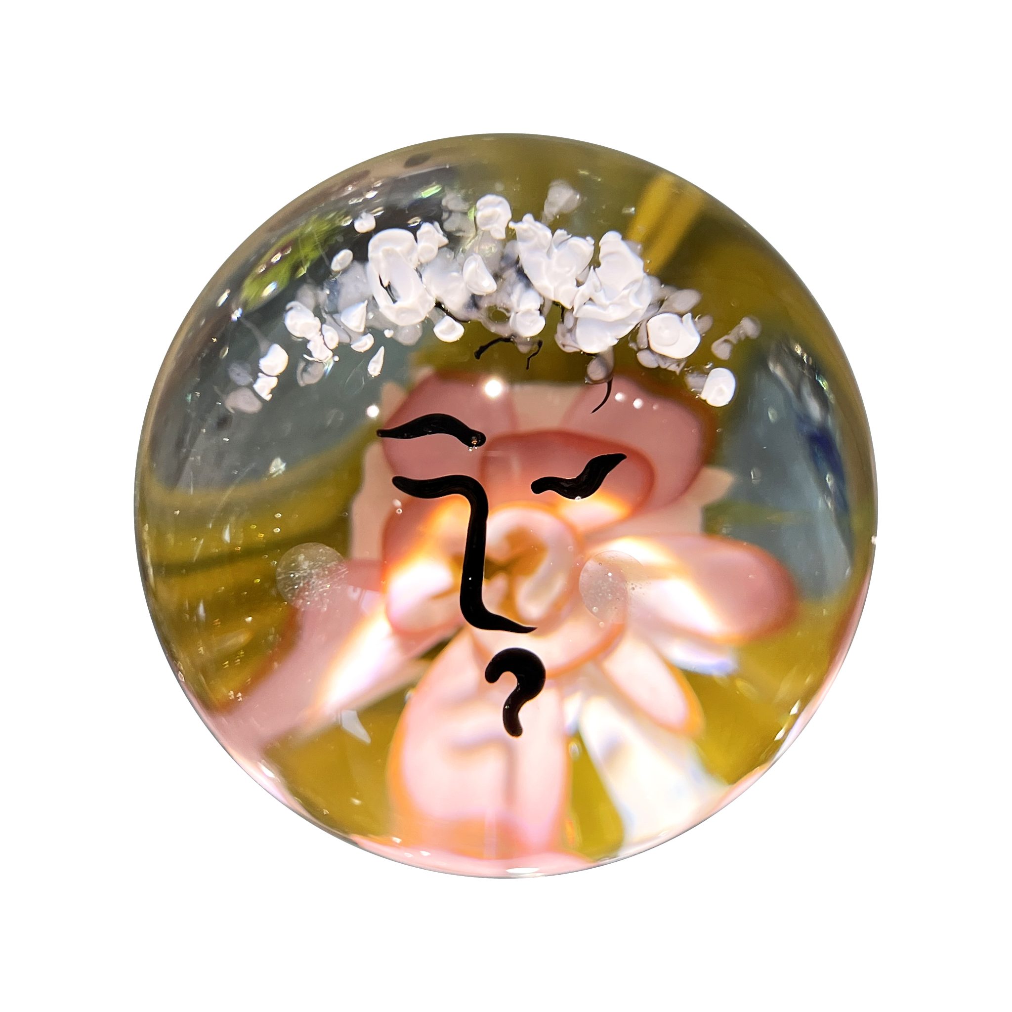 Décor entièrement réalisé à la main par inclusions de pigments colorés, découvrant un motif de visage de femme disposé sur un fond de fleur.